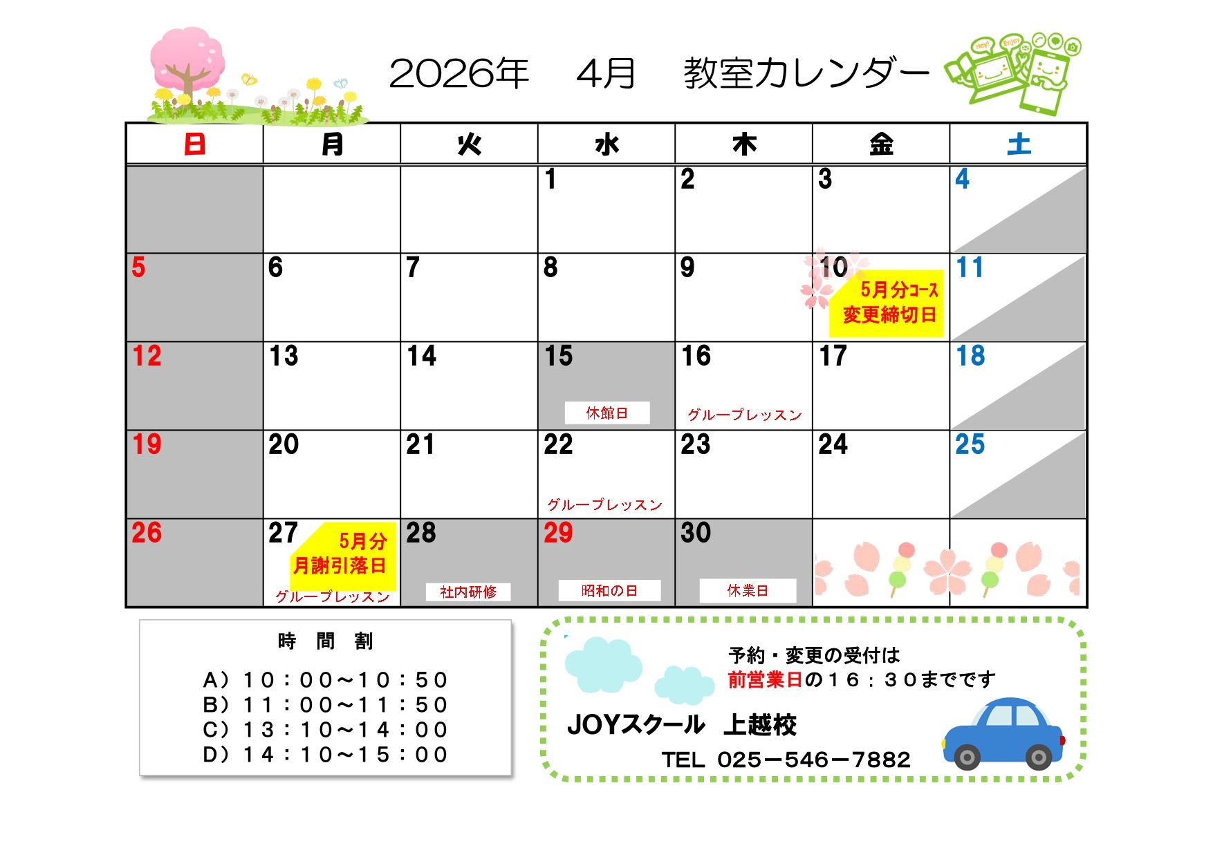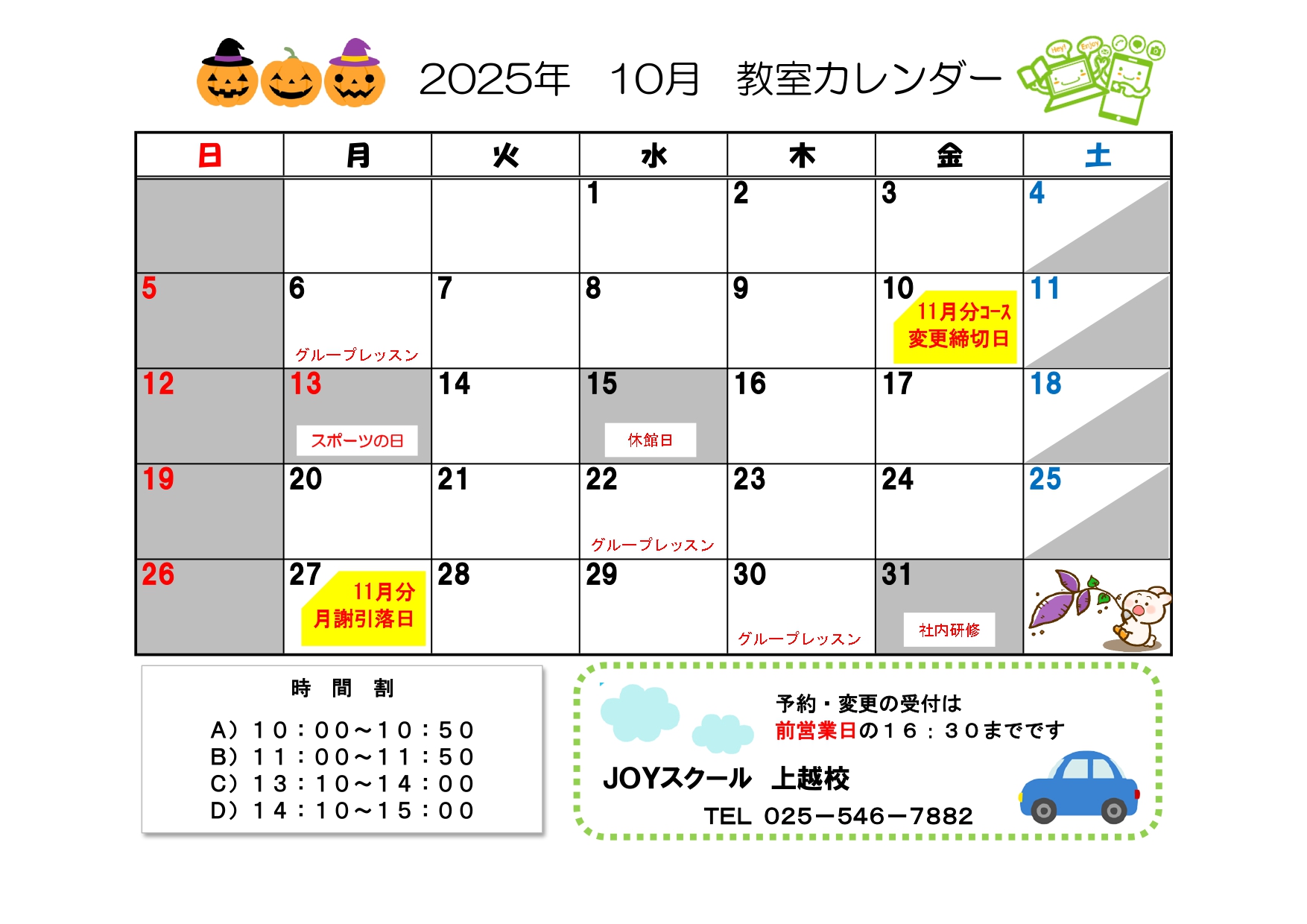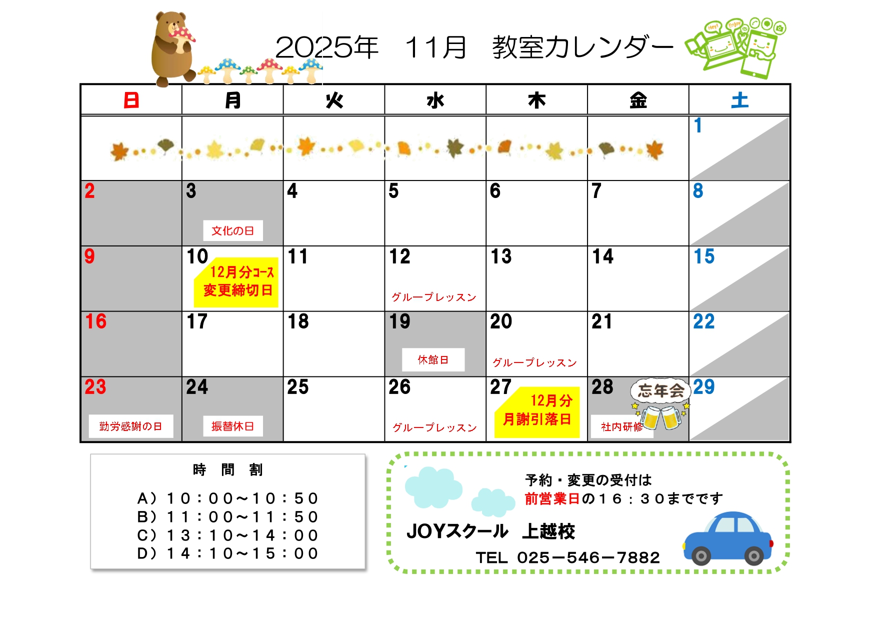 お問い合わせは、お近くのジョイスクール各校へお電話ください。