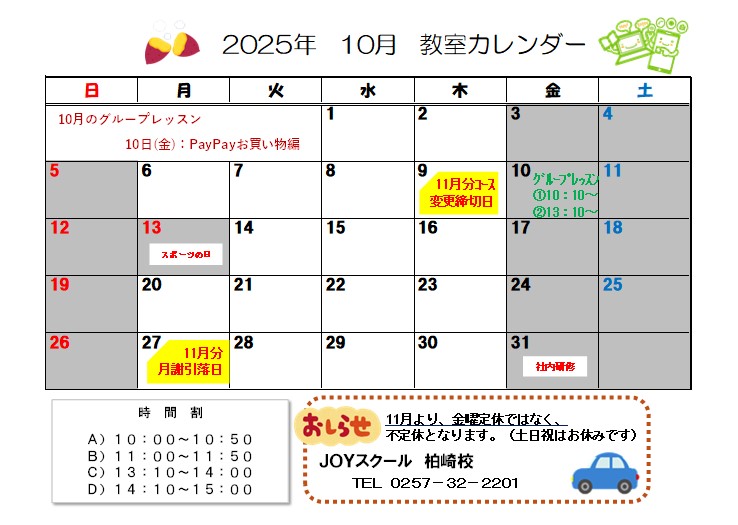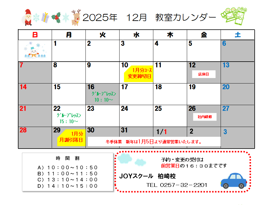柏崎校カレンダー