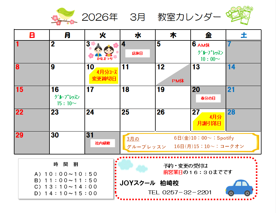 レッスン内容や教室について気になったら、まずはお電話ください♪