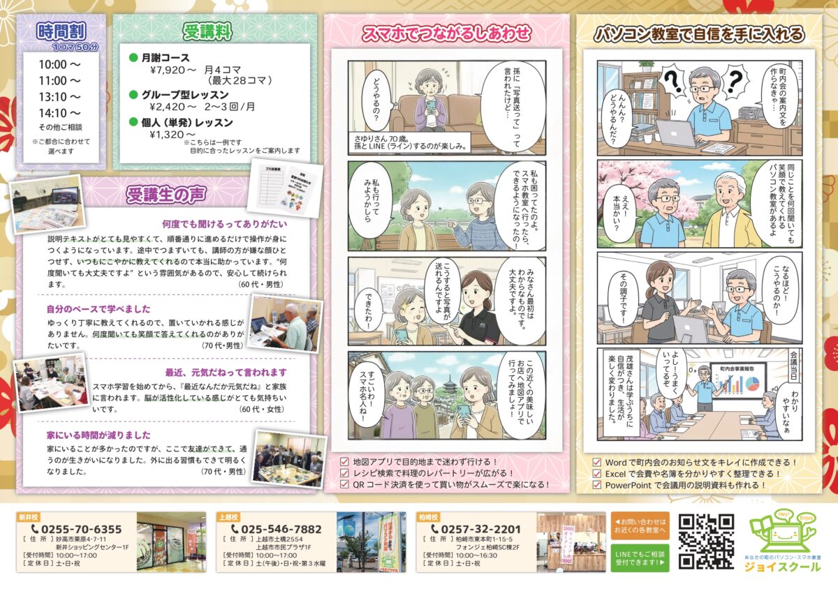 いつものジョイスクールを、そのまま感じていただけます。