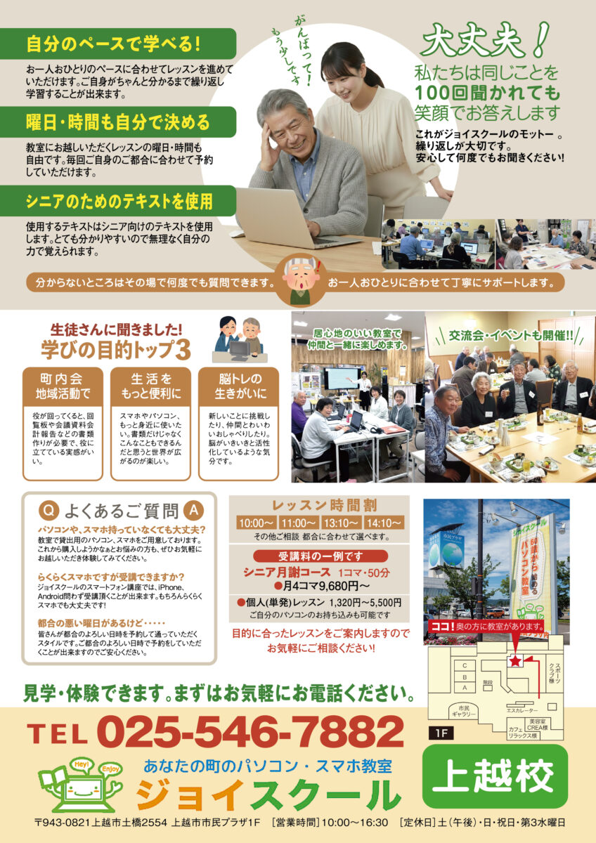 初心者専門のパソコン・スマホ教室です。